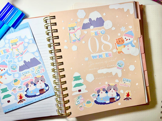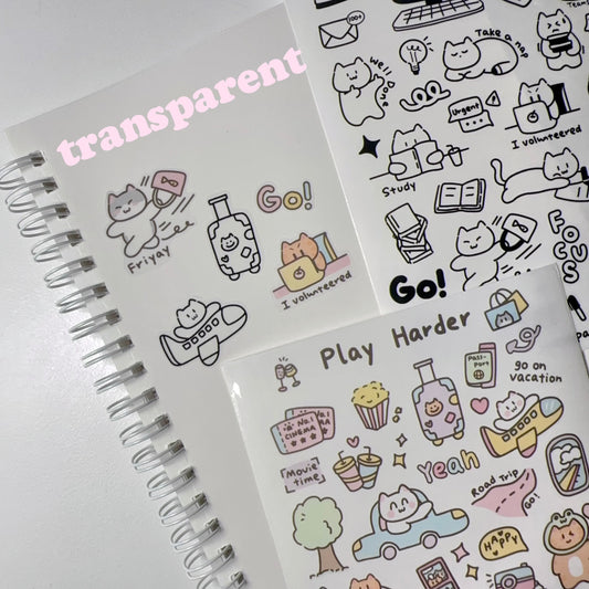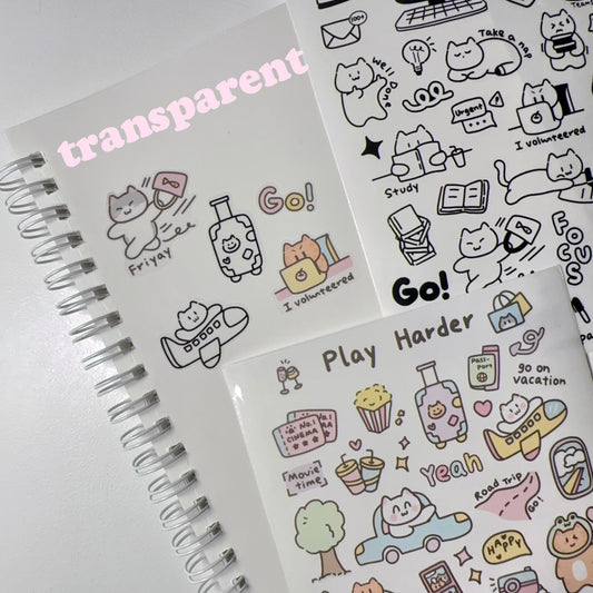 Work and Study | Cute Cat Transparent Sticker Sheet | Bullet Journal, Planners, Scrapbook, Water Bottle, Laptop Decal, Animal Stickers