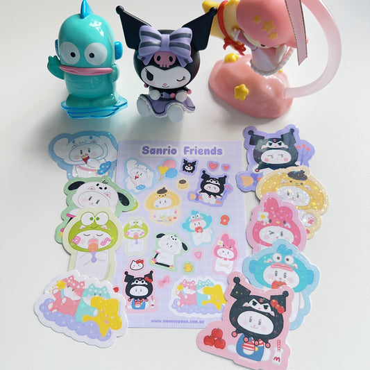 Sanrio | Cute Cat Sticker Sheet | Bullet Journal, Planner, Scrapbook, Water Bottle, Laptop Decal, Fan Art