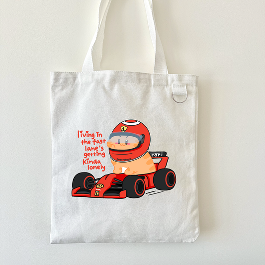 Ferrari F1 Tote Bag, Motorsport Racing Cat Canvas Tote, Formula 1 Gift, Gift for F1 Cat Lover, Eco Friendly Bag