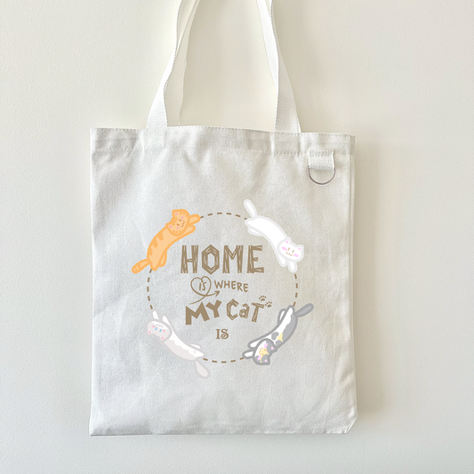 Home Is Where My Cat Is Tote Bag, Aesthetic Trendy Cat Canvas Tote Gift for Cat Lover, Cute Graphic Tote, Eco Friendly Bag