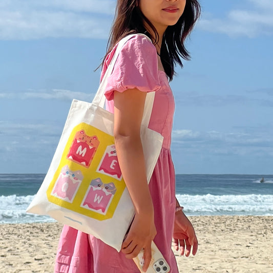 Tetris Cute Cat Canvas Tote Bag